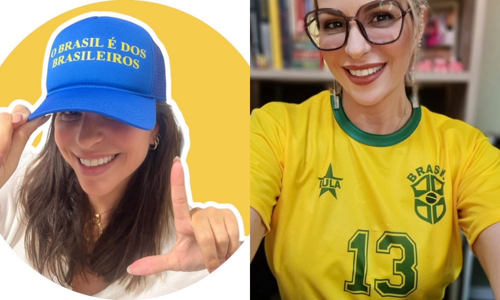 Em meio à polêmica guerra de tarifas comerciais entre o Brasil e Estados Unidos, a beldade que brilha em uma tradicional plataforma adulta dos Estados Unidos mostrou com um figurino com as cores nacionais com classe, charme e elegância.