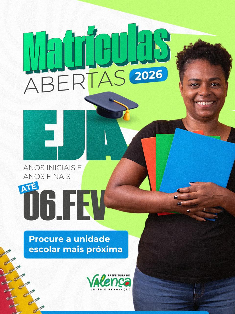 A Prefeitura de Valença está com inscrições abertas para a Educação de Jovens e Adultos (EJA) referente ao ano letivo de 2026. A iniciativa representa uma nova chance para quem, por diferentes motivos, precisou interromper os estudos e agora deseja retomar a trajetória escolar.