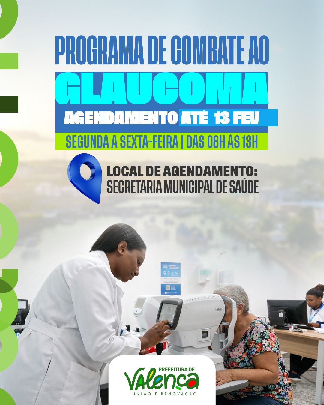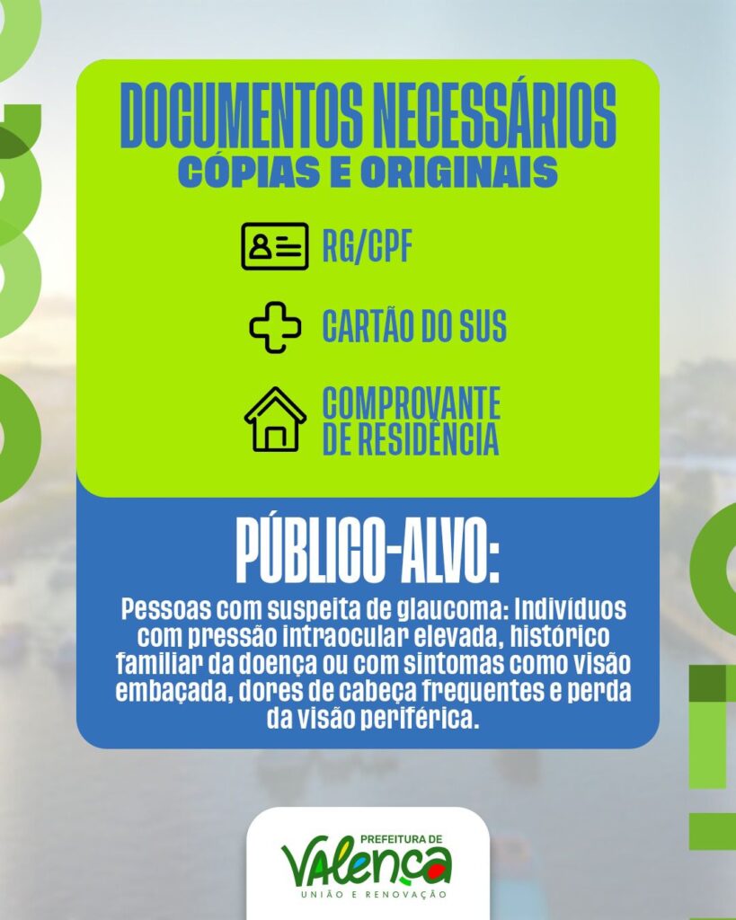 A Prefeitura de Valença, através da Secretaria Municipal de Saúde, iniciou uma importante ação voltada à saúde ocular da população. Até o dia 13 de fevereiro estão abertos os agendamentos para o Programa de Combate ao Glaucoma, uma iniciativa que busca diagnosticar e tratar precocemente uma das doenças que mais afetam a visão.