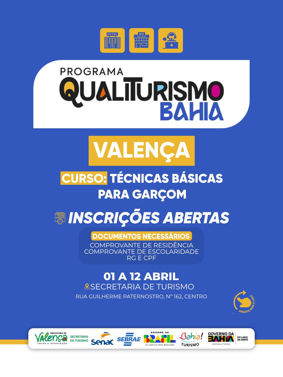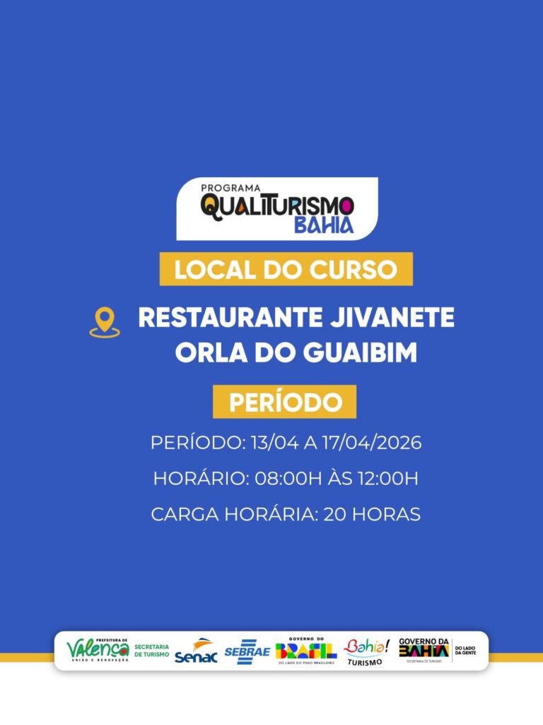 Com foco na qualificação profissional e no fortalecimento do setor turístico, a Prefeitura de Valença, por meio da Secretaria de Turismo, está com inscrições abertas para o curso Técnicas Básicas para Garçom, uma iniciativa que integra o Programa Qualiturismo Bahia. A ação visa preparar trabalhadores para atuar com mais eficiência e qualidade no atendimento ao público, especialmente nas áreas de bares e restaurantes, que desempenham papel estratégico na experiência turística do município.