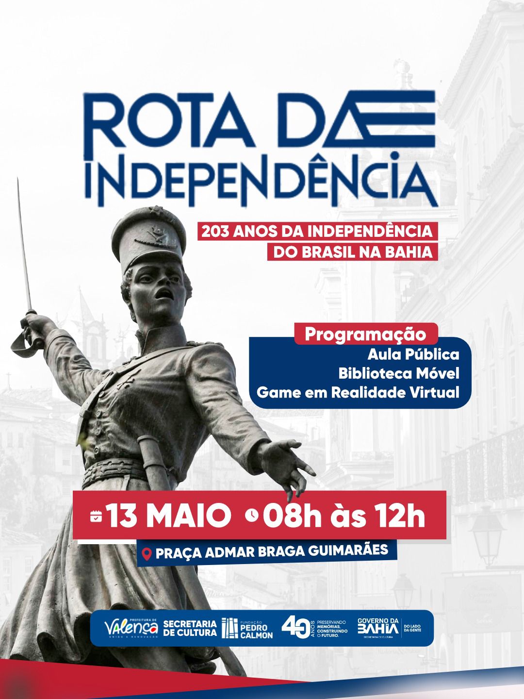 Valença é um dos 24 municípios baianos que integram a Rota da Independência, iniciativa que celebra os 203 anos da Independência do Brasil na Bahia.